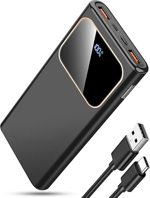 【10000 mAh Power Bank & Universal compatible】10000mAh Ultra-Large cell capacity phone power bank will keep your phone running all day. No more worrying about your phone running out of juice during outdoor activities like hiking. Compatible with most tech devices on the market, full capacity support charge iPhone 8 3.8 times, Samsung S23 1.8 times, iPad mini1 1.6 times.